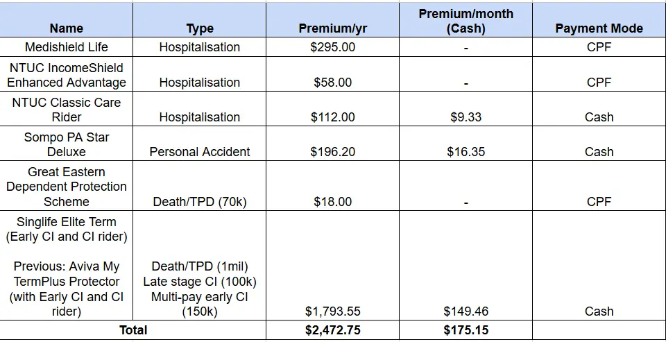 I’m sharing my own plans here in the hopes that it can be a good reference point for anyone who is just starting out. Other guides I found useful are: this Reddit thread and Investment Moats’ insurance philosophy.